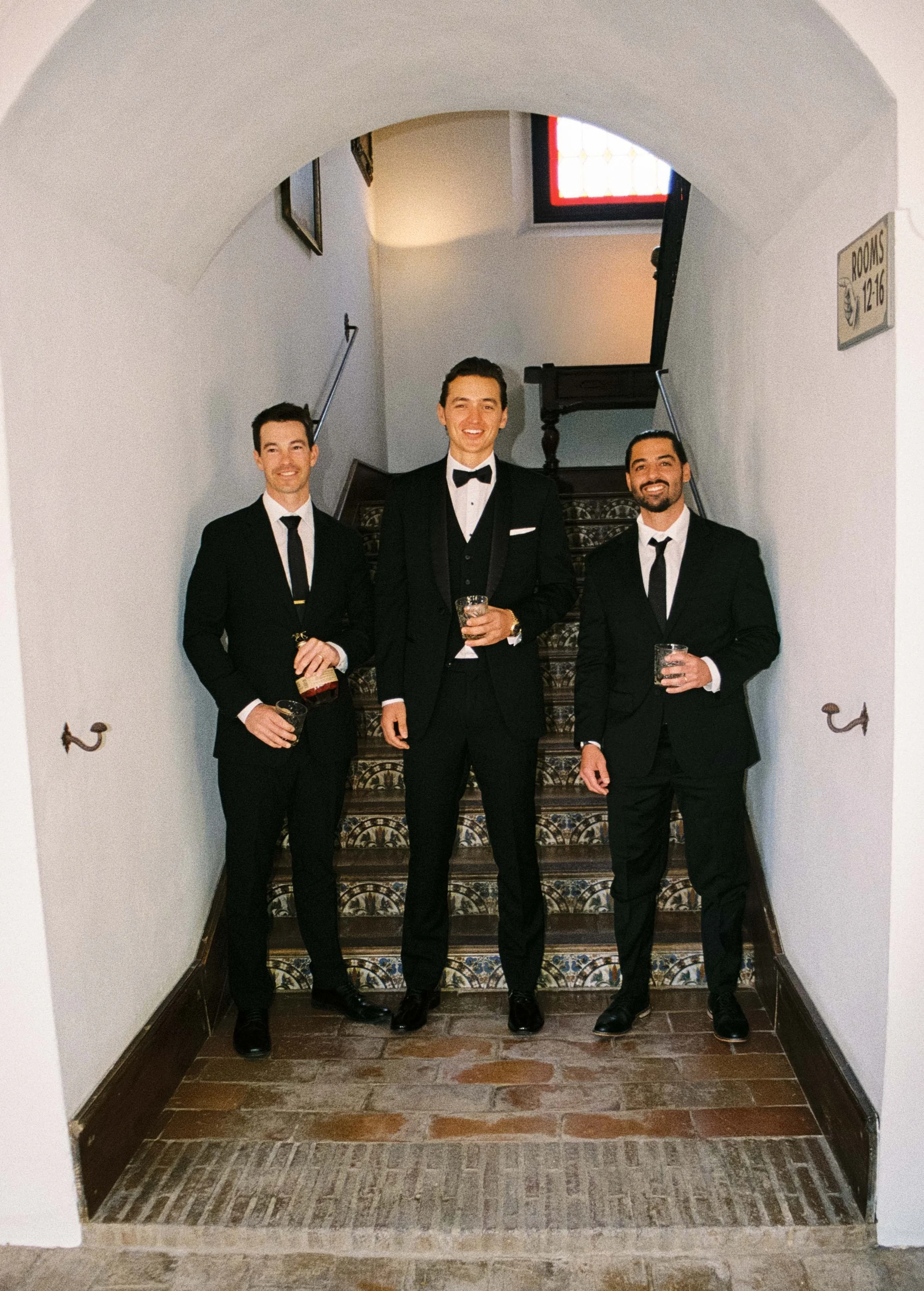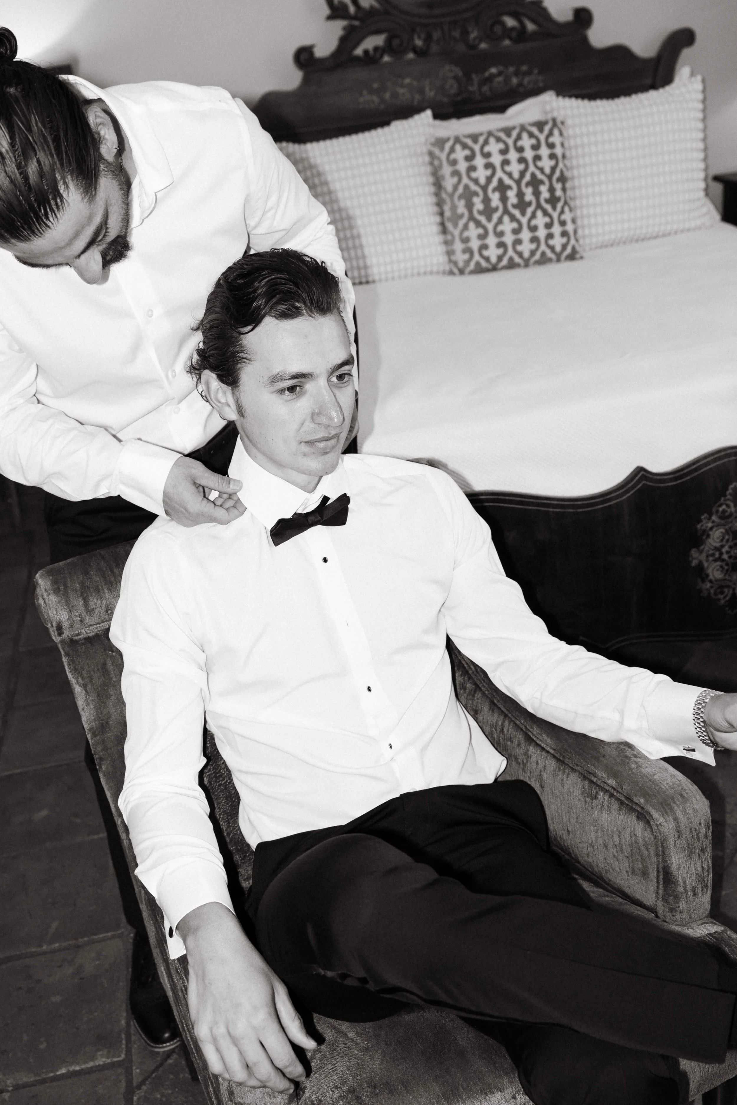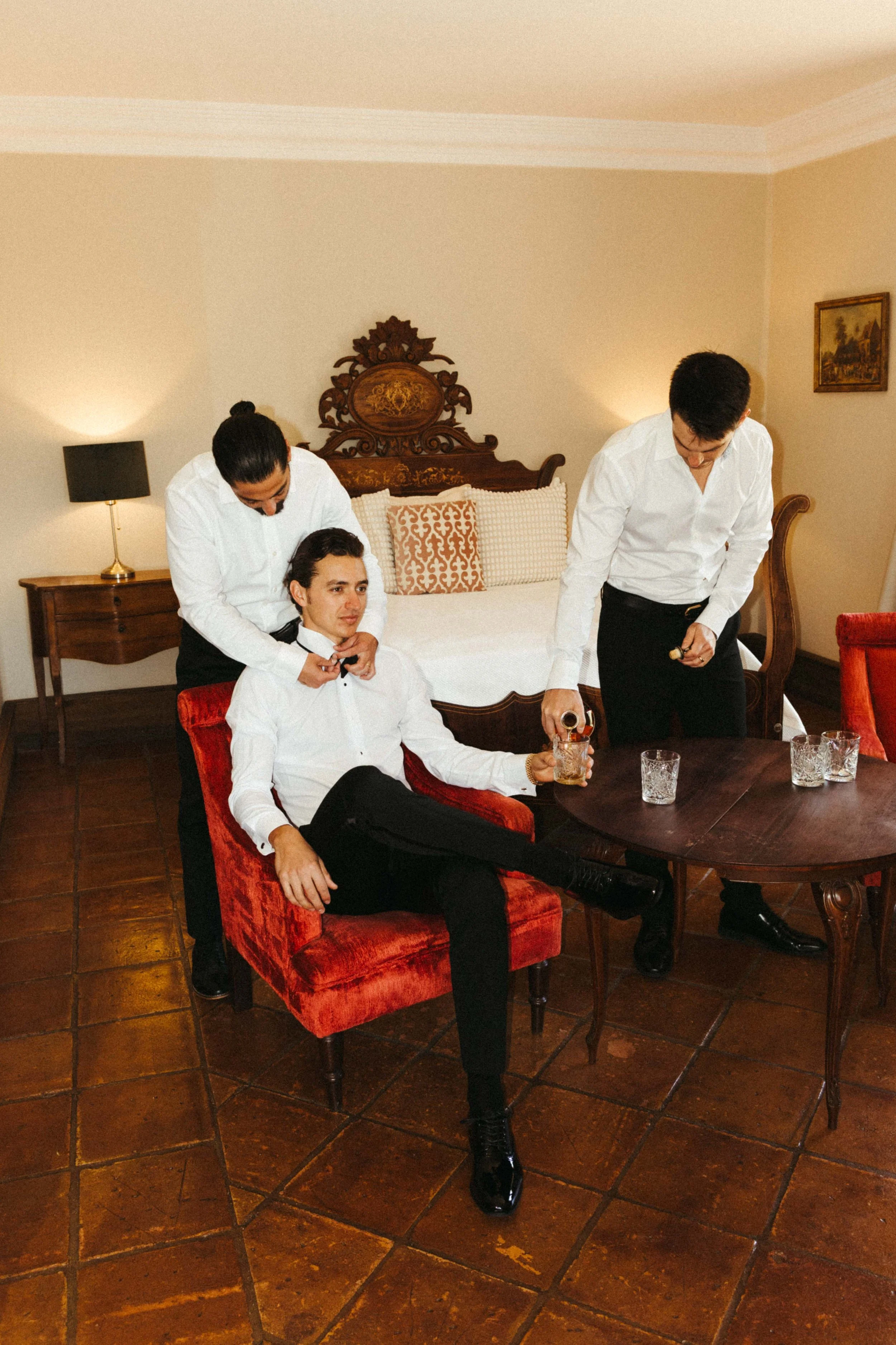 When we arrived, Luca was still in his swimsuit, heading upstairs to start getting ready with his two groomsmen. It already felt relaxed. No rush, no chaos, just a really good energy in the room. The getting ready was calm in the best way. They were drinking bourbon, laughing and figuring out bow ties. It never felt overcrowded, which made such a difference in how everything looked and felt in the photos.There was also a quiet emotional moment when his mum gave him his cufflinks. Those small gestures always end up meaning the most.