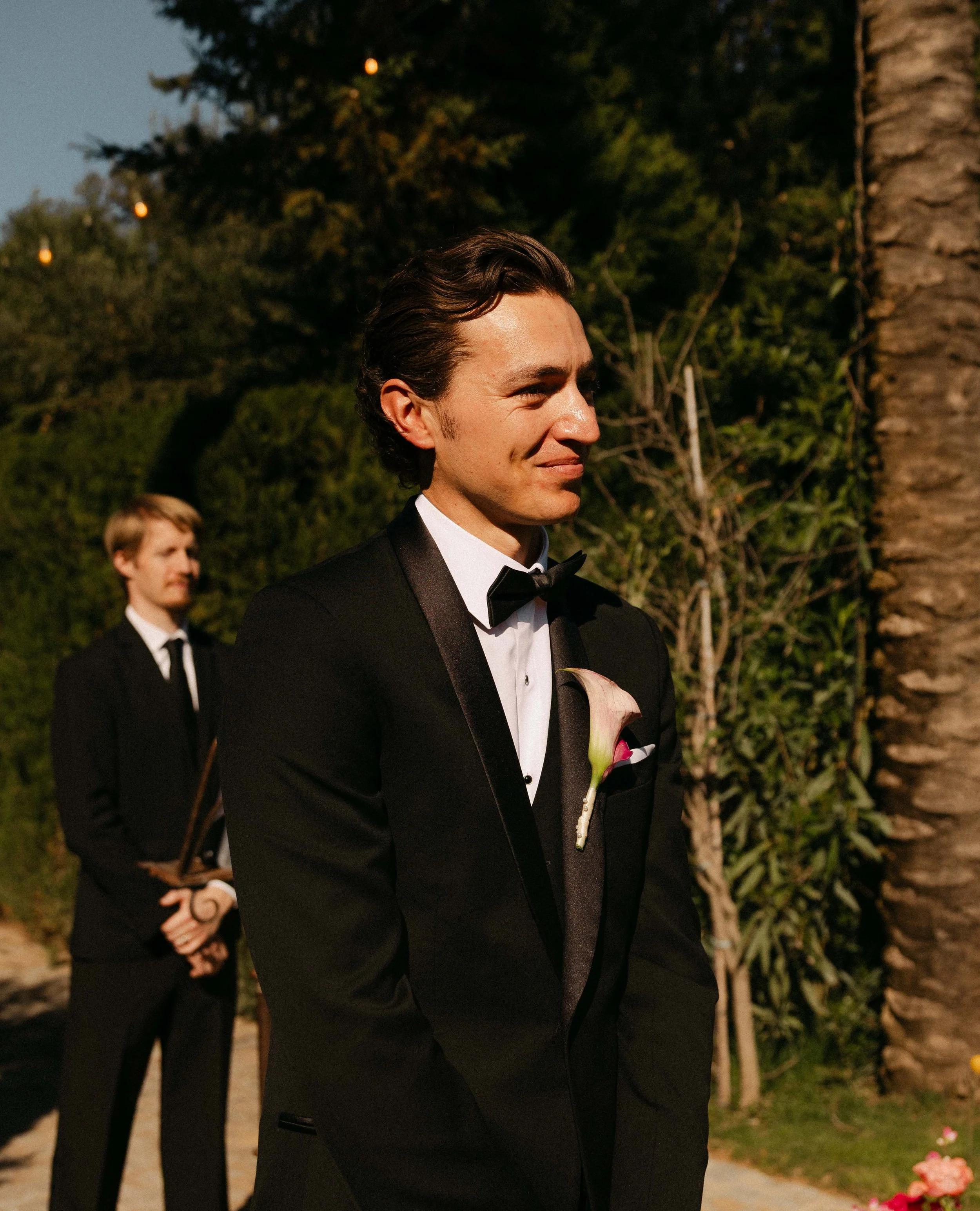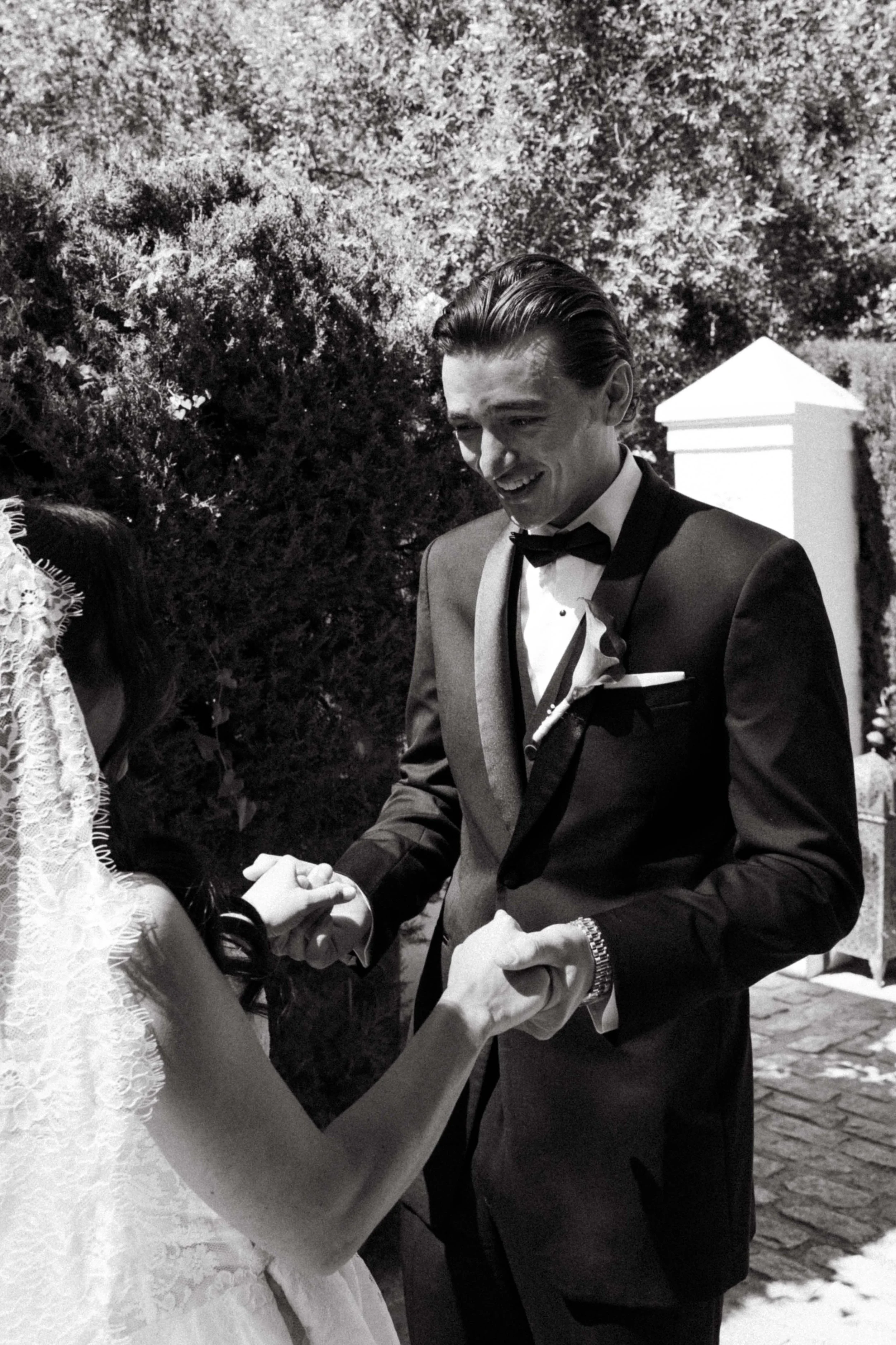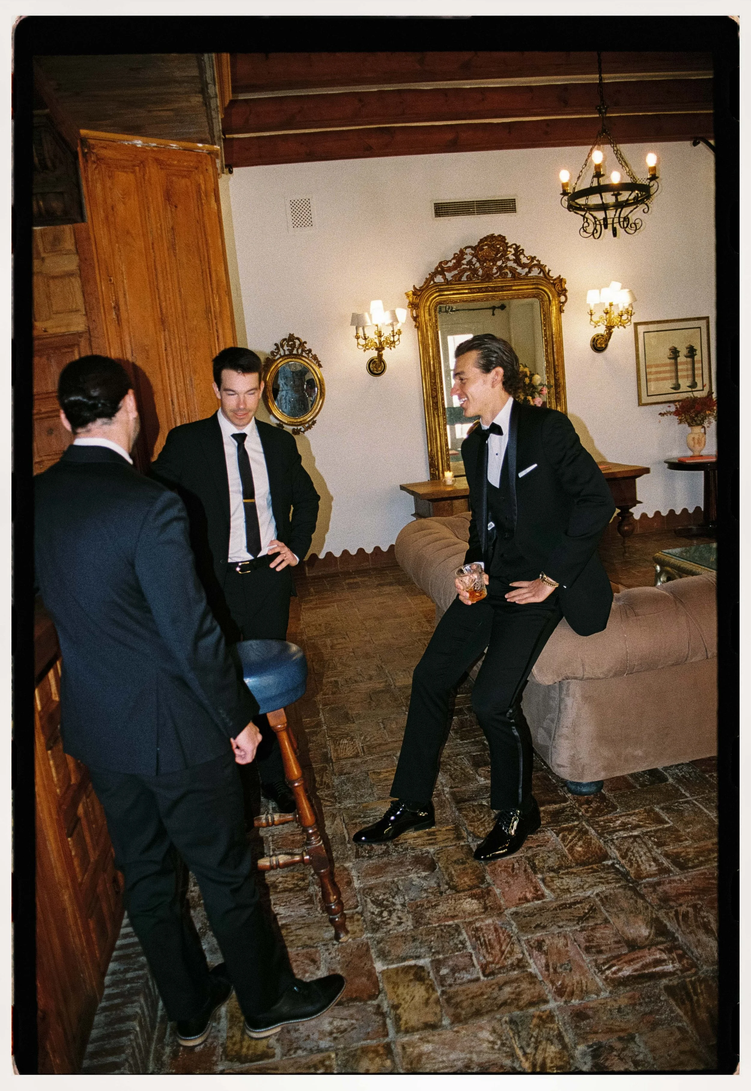 When we arrived, Luca was still in his swimsuit, heading upstairs to start getting ready with his two groomsmen. It already felt relaxed. No rush, no chaos, just a really good energy in the room. The getting ready was calm in the best way. They were drinking bourbon, laughing and figuring out bow ties. It never felt overcrowded, which made such a difference in how everything looked and felt in the photos.There was also a quiet emotional moment when his mum gave him his cufflinks. Those small gestures always end up meaning the most.