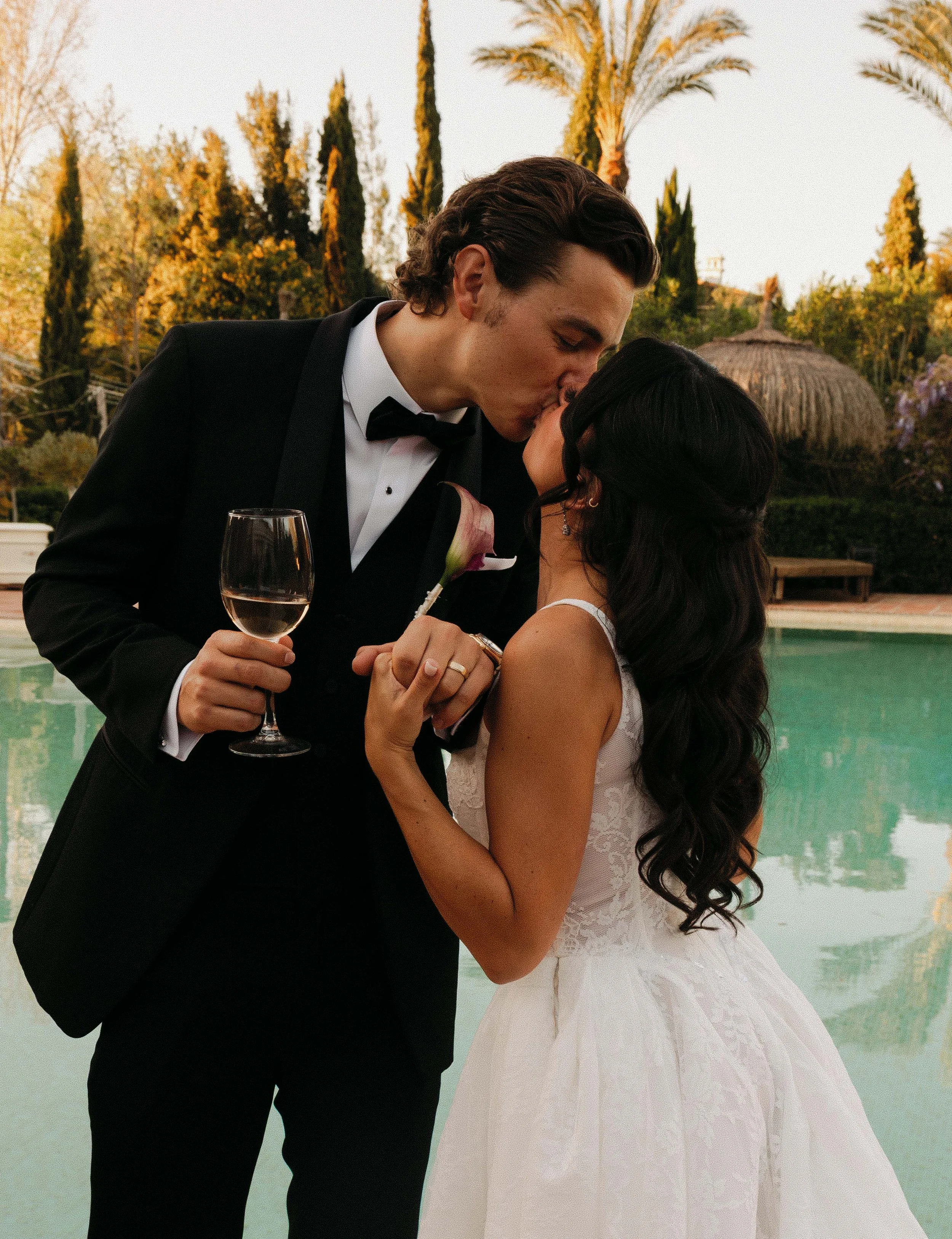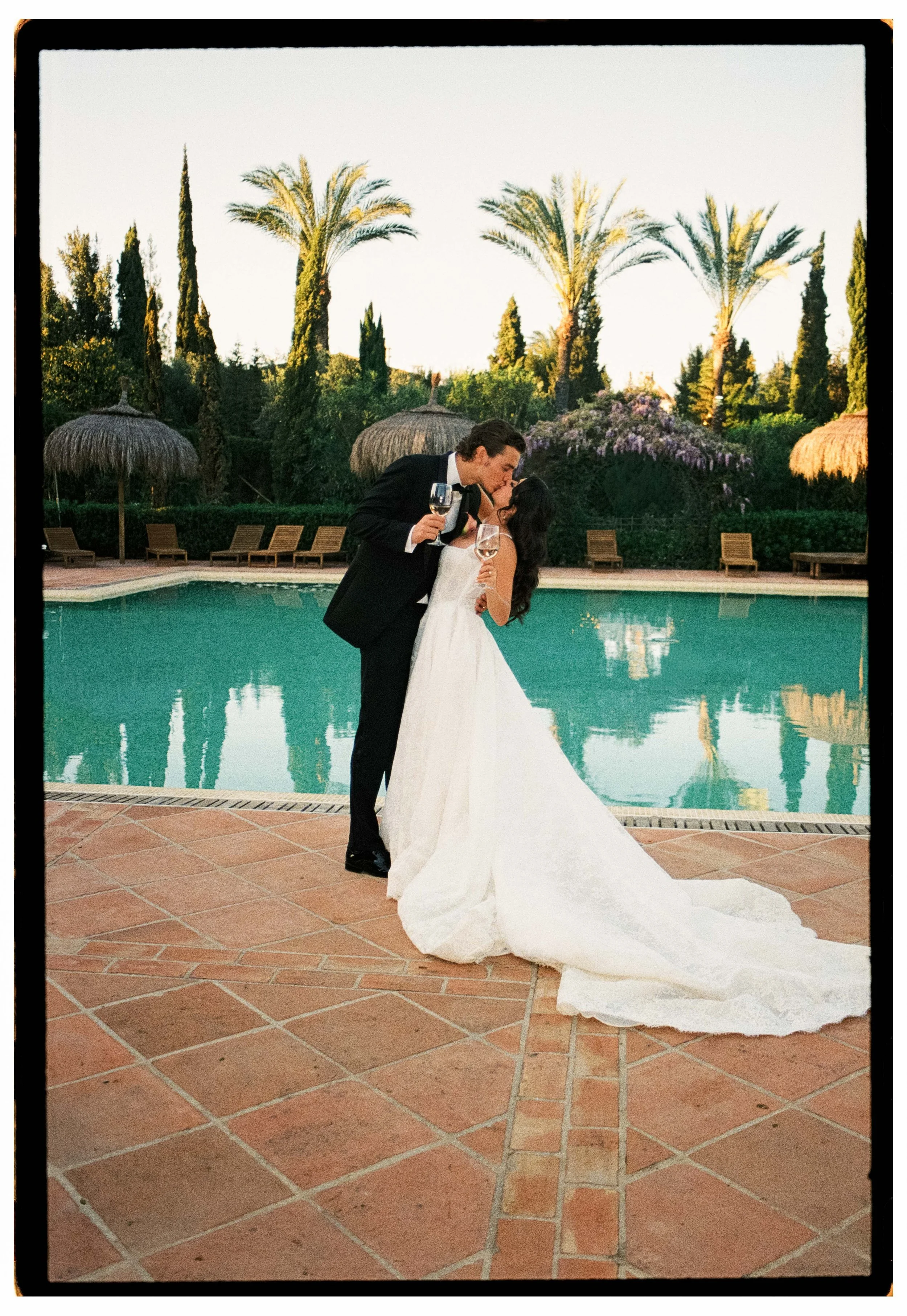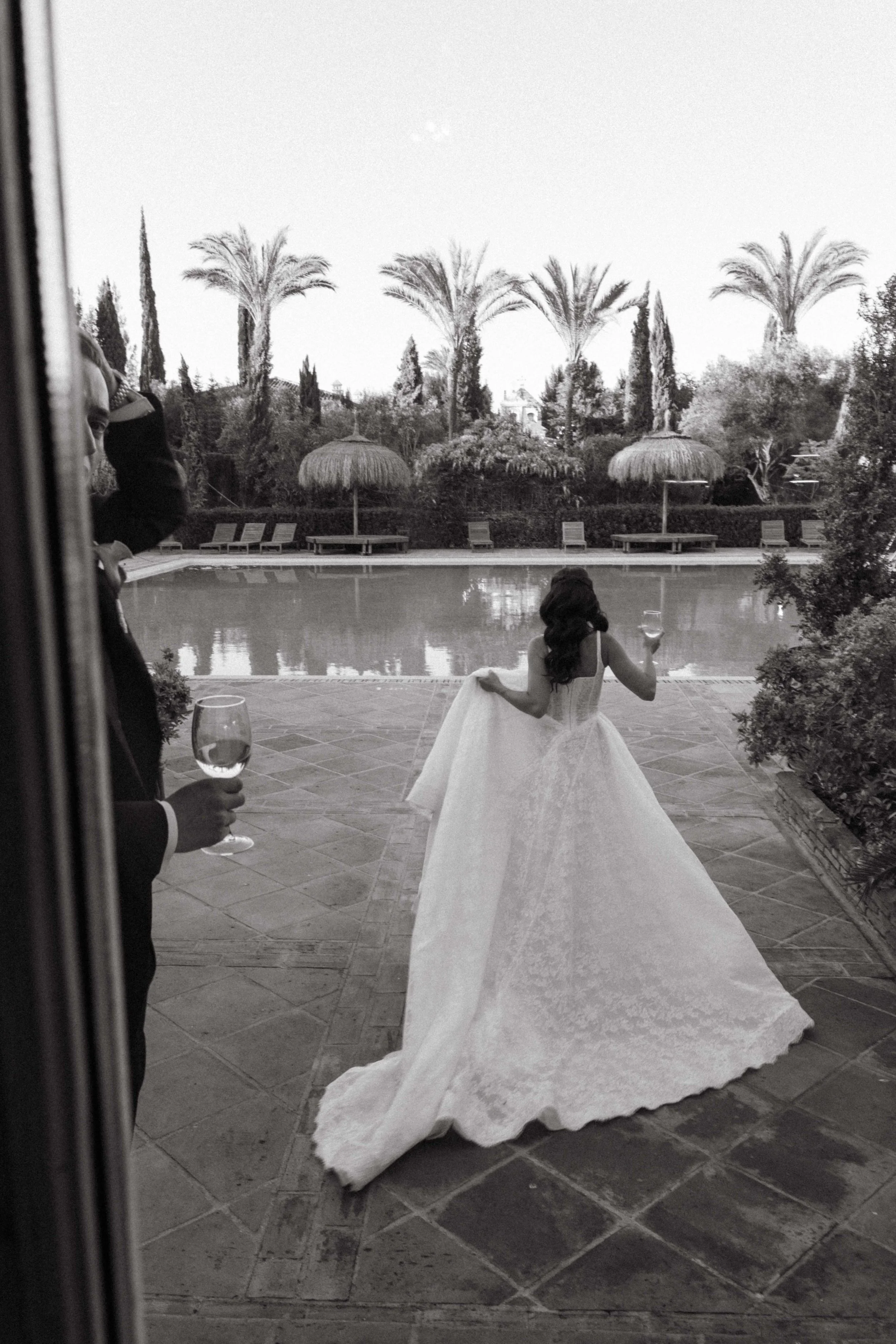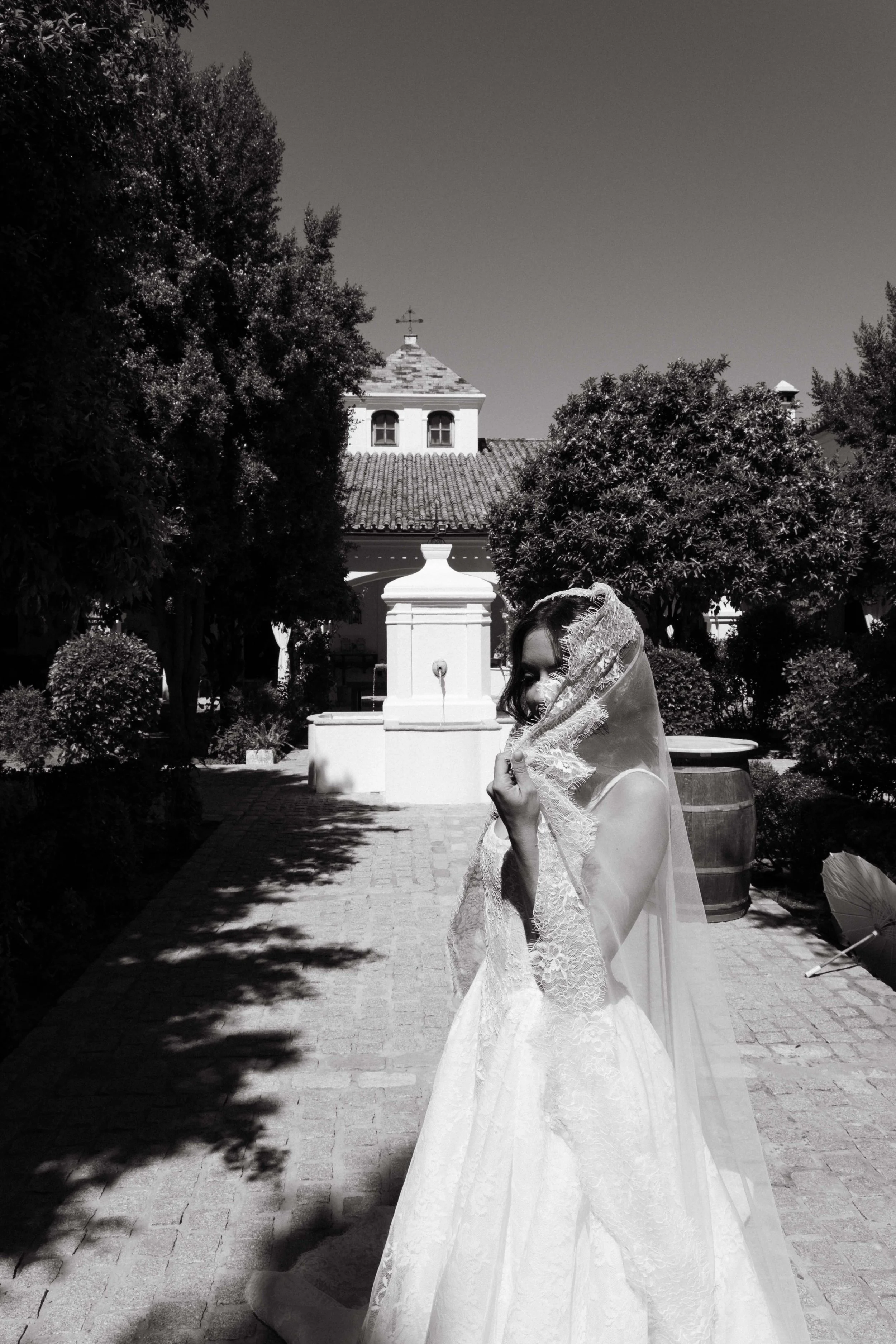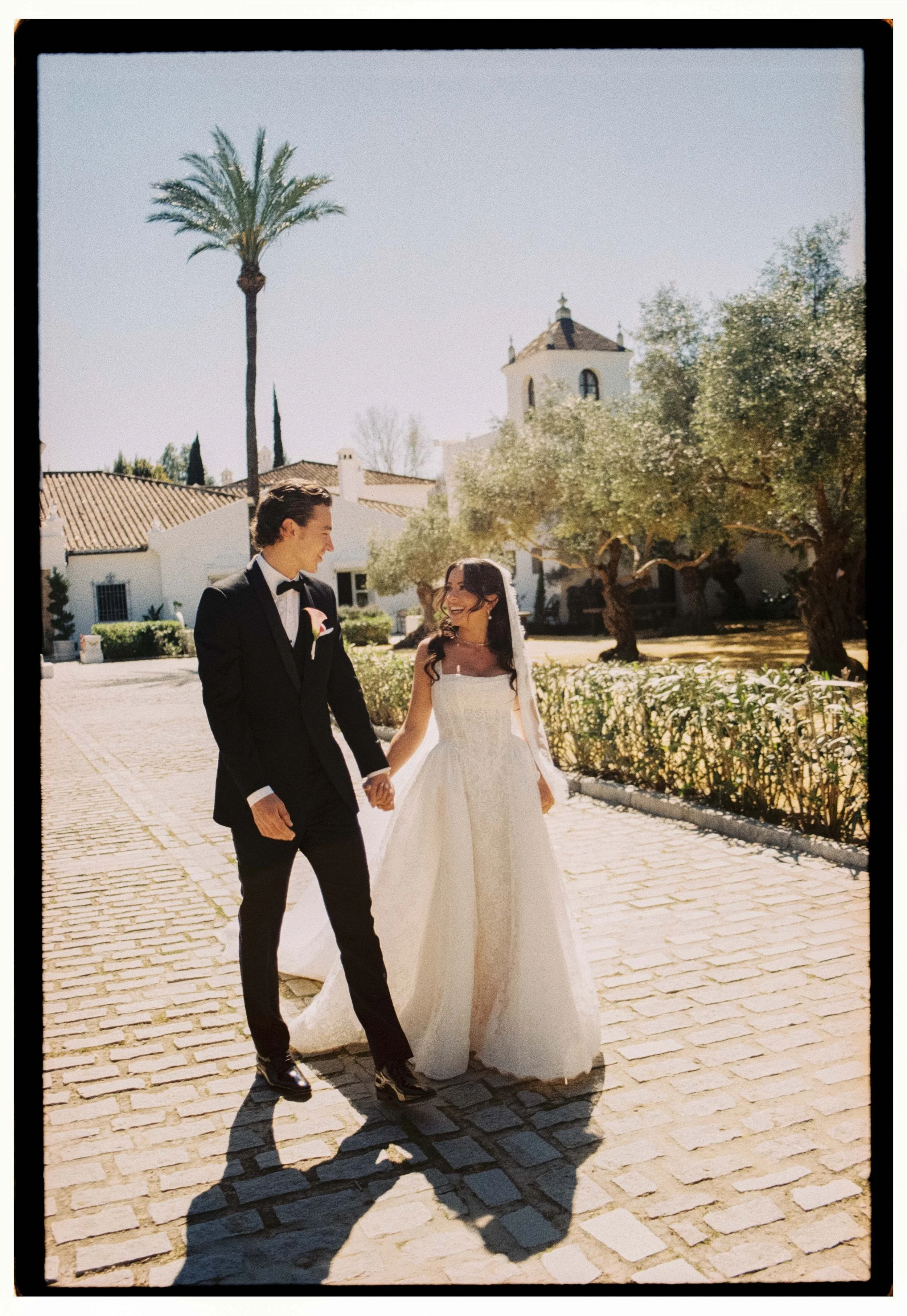 As we arrived to finca Monasterio, the space was filled with sun, beautiful landscapes and a calm atmosphere. The story of the space is historic, but when it is paired with a modern vision, it creates something really special. Melanie and Luca’s day was exactly that. Effortless, bold, and full of personality from the very beginning. We documented everything across film, digital, and video, including drone. The approach was a mix of editorial portraits, guided moments, and a strong documentary eye, so nothing ever felt forced, but everything still looked intentional.